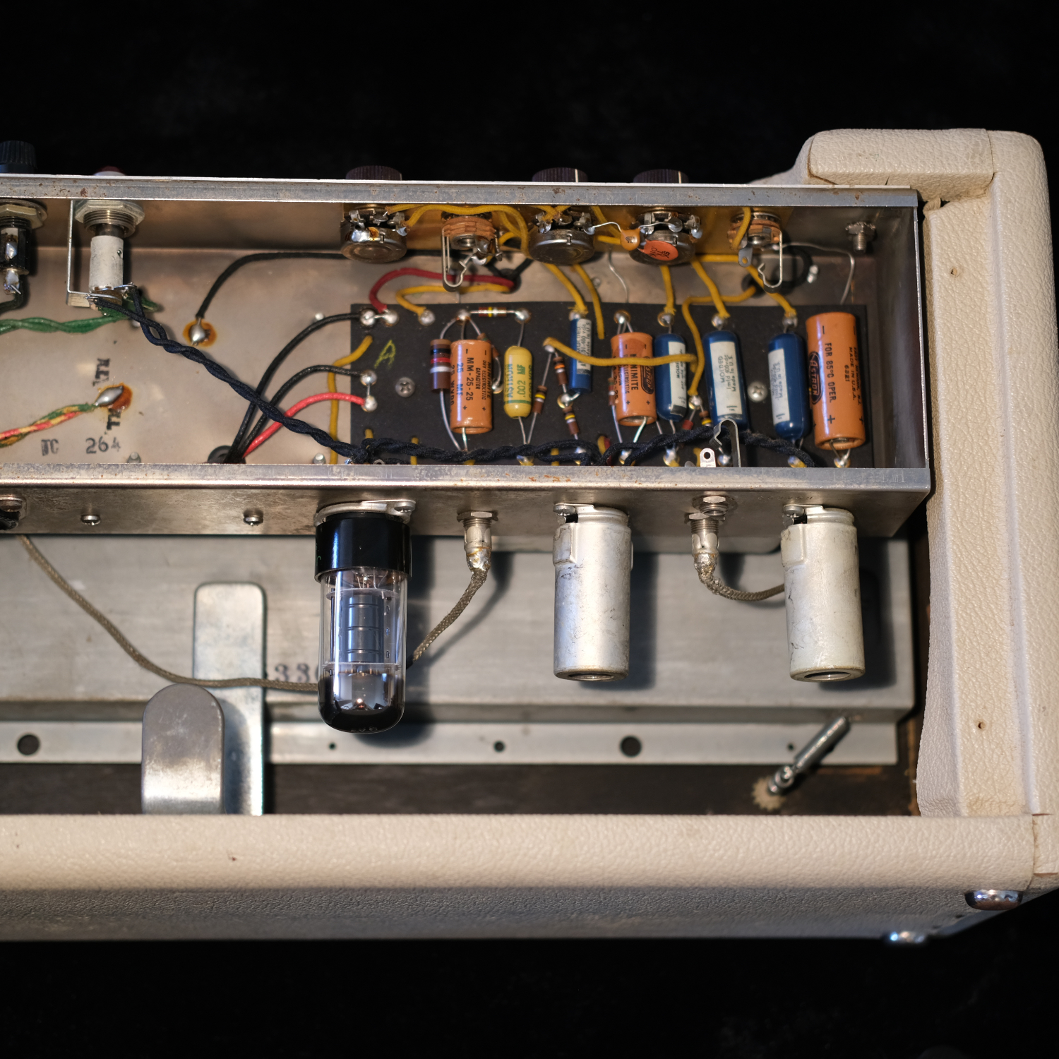 Upgrades/modifications: Safe 3-prong power cord, 2 tubes; 1x electro-harmonix 12AT7EH + 1x TAD 7025, plus a set of new electrolytic capacitors –see pics