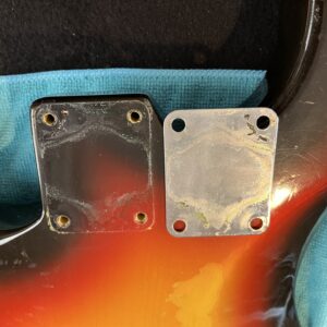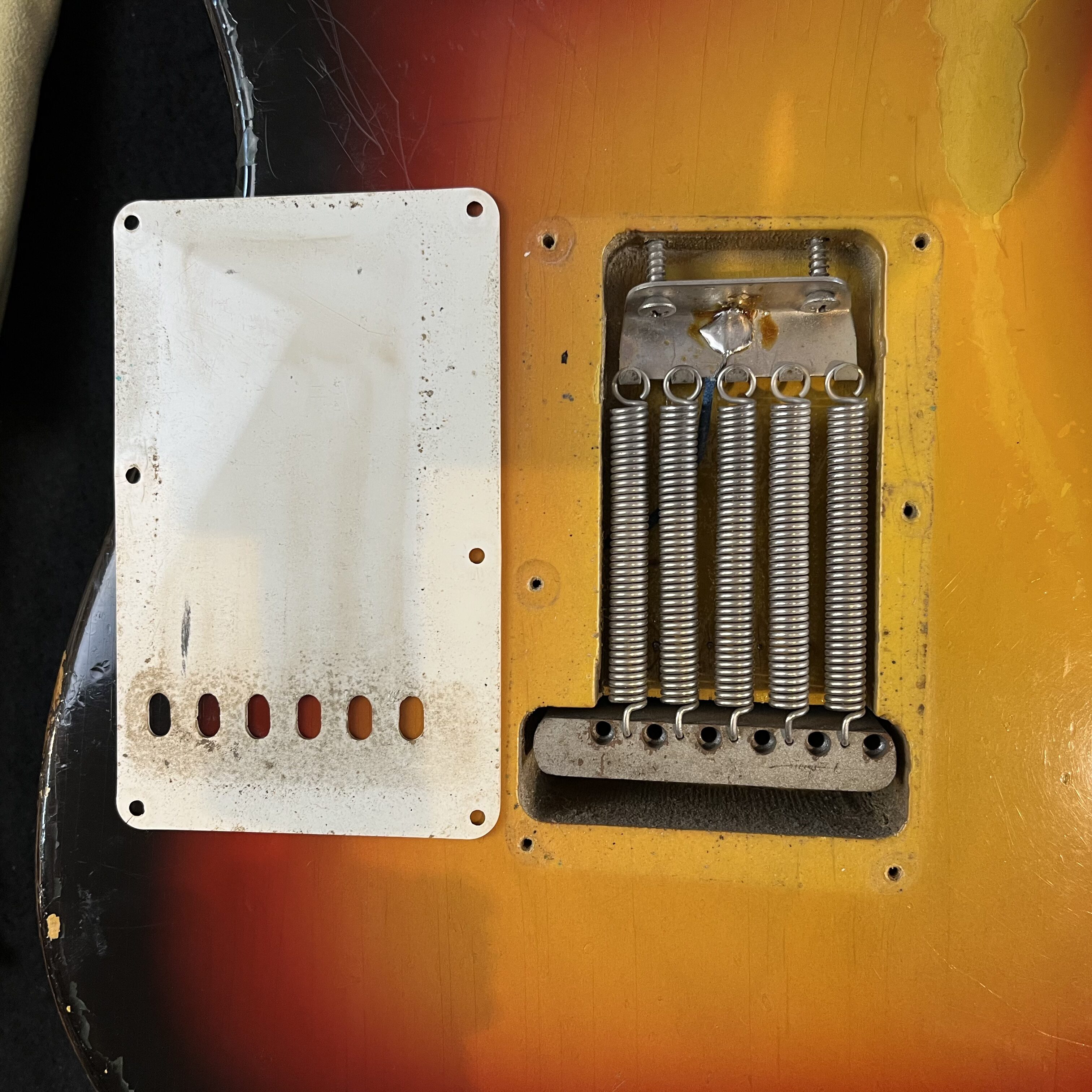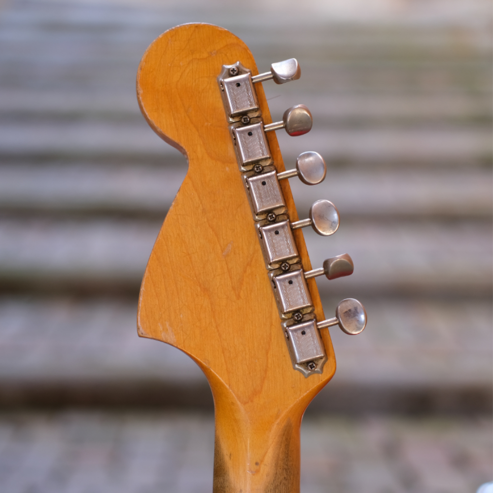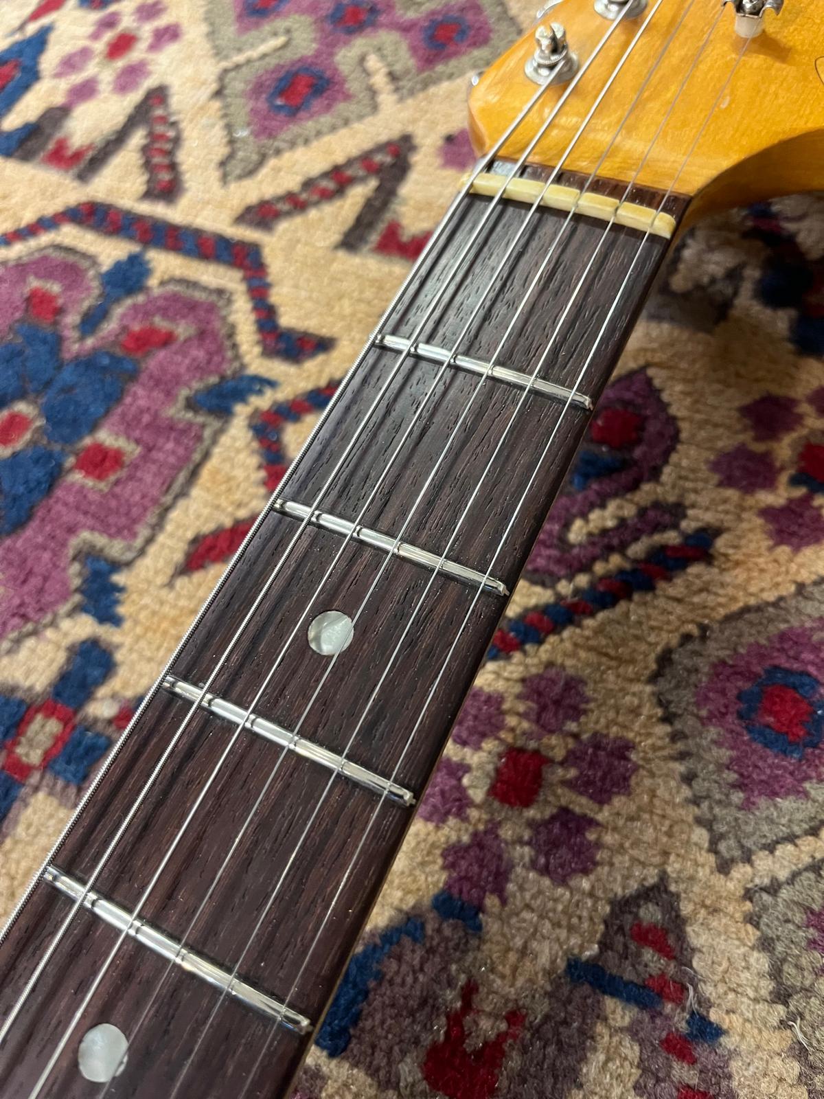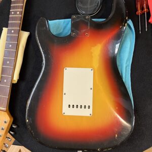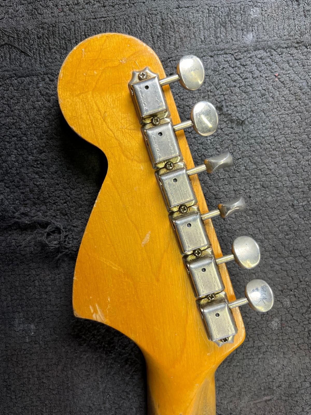 All plastics and hardware are original to the guitar; -white 3-ply pickguard, -knobs, -switch tip, -trem tip, -trem arm, -trem springs, -tuners.