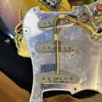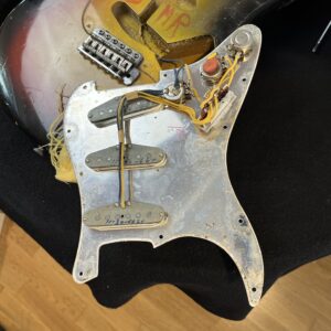 All original electronics; -grey bottom pickups read 11-30-66 are dated to November 30 of 1966, -original masking tape, -Stackpole pot codes read 250K 035-865 / AUD304-6608 and are dated to the 8th week of 1966, -3 position switch.
