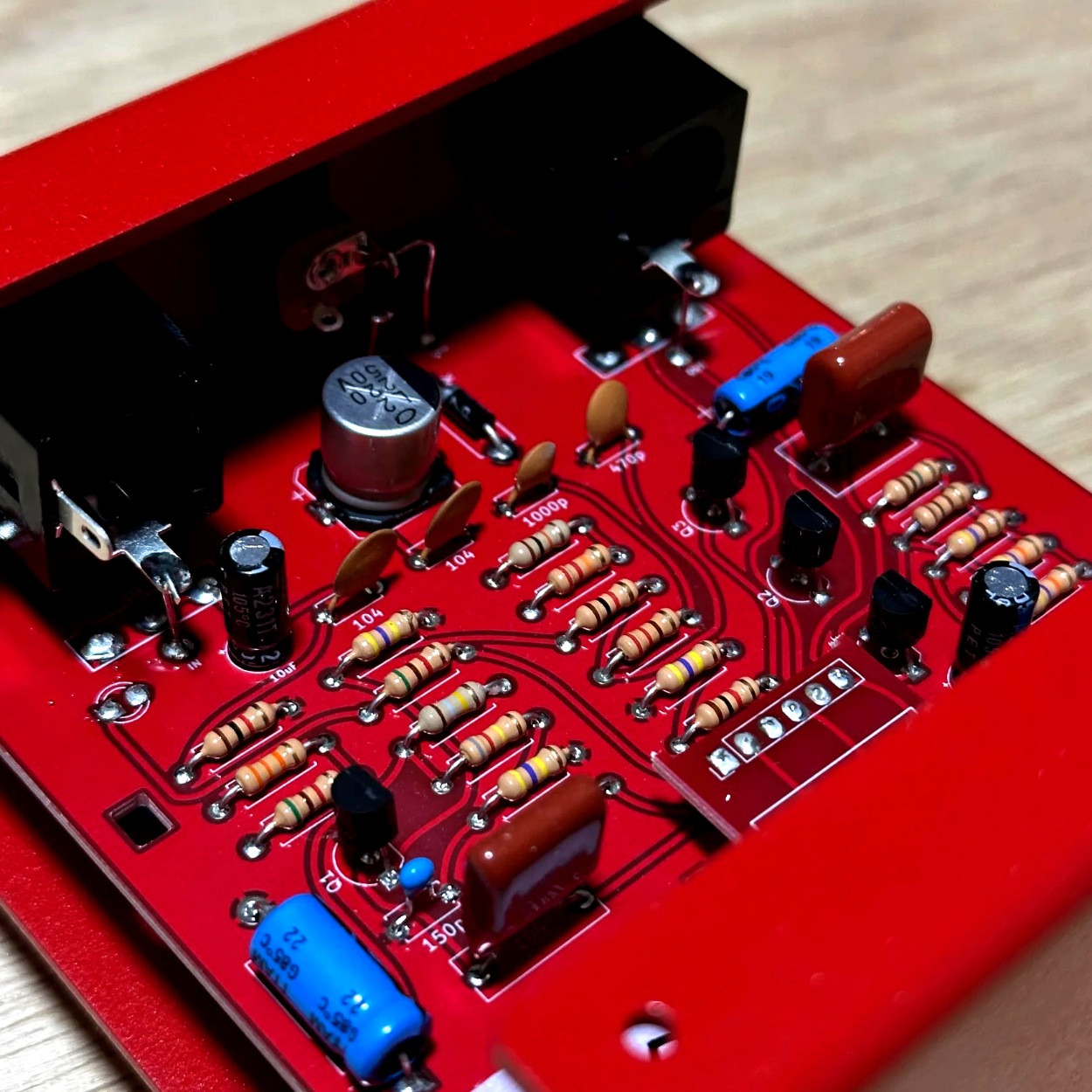 This fuzz-oriented pedal tends to have too much bass tone. The “puzz” was designed to have a solid low end, but not too much. I also designed it to prevent the loss of high frequencies when the volume of the pedal is turned down.